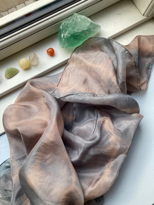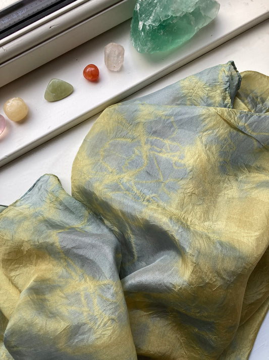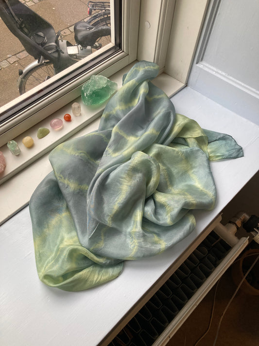 Plantefarvede tørklæder i 100% silke. Hvert tørklæde er unikt og håndfarvet med naturens smukke nuancer, som jeg selv har samlet og plukket.