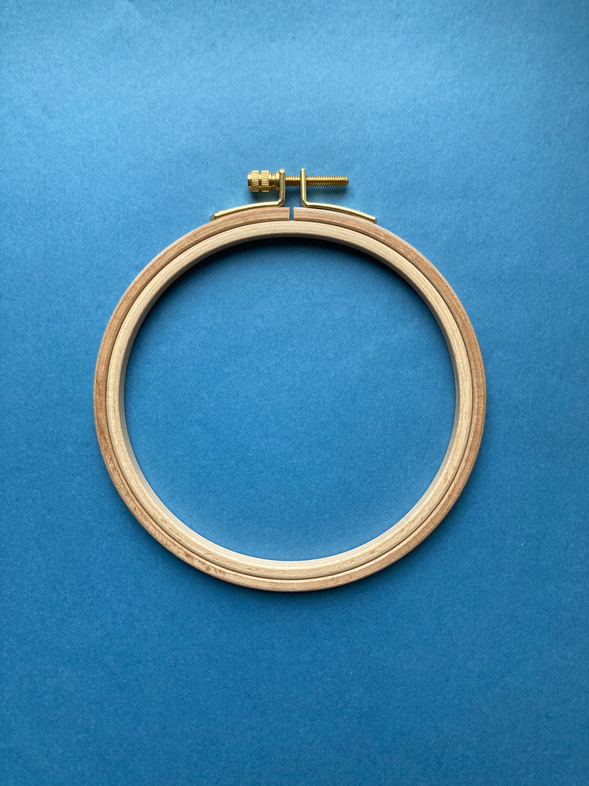 Broderiring til at spænde stoffet ud på, inden der broderes