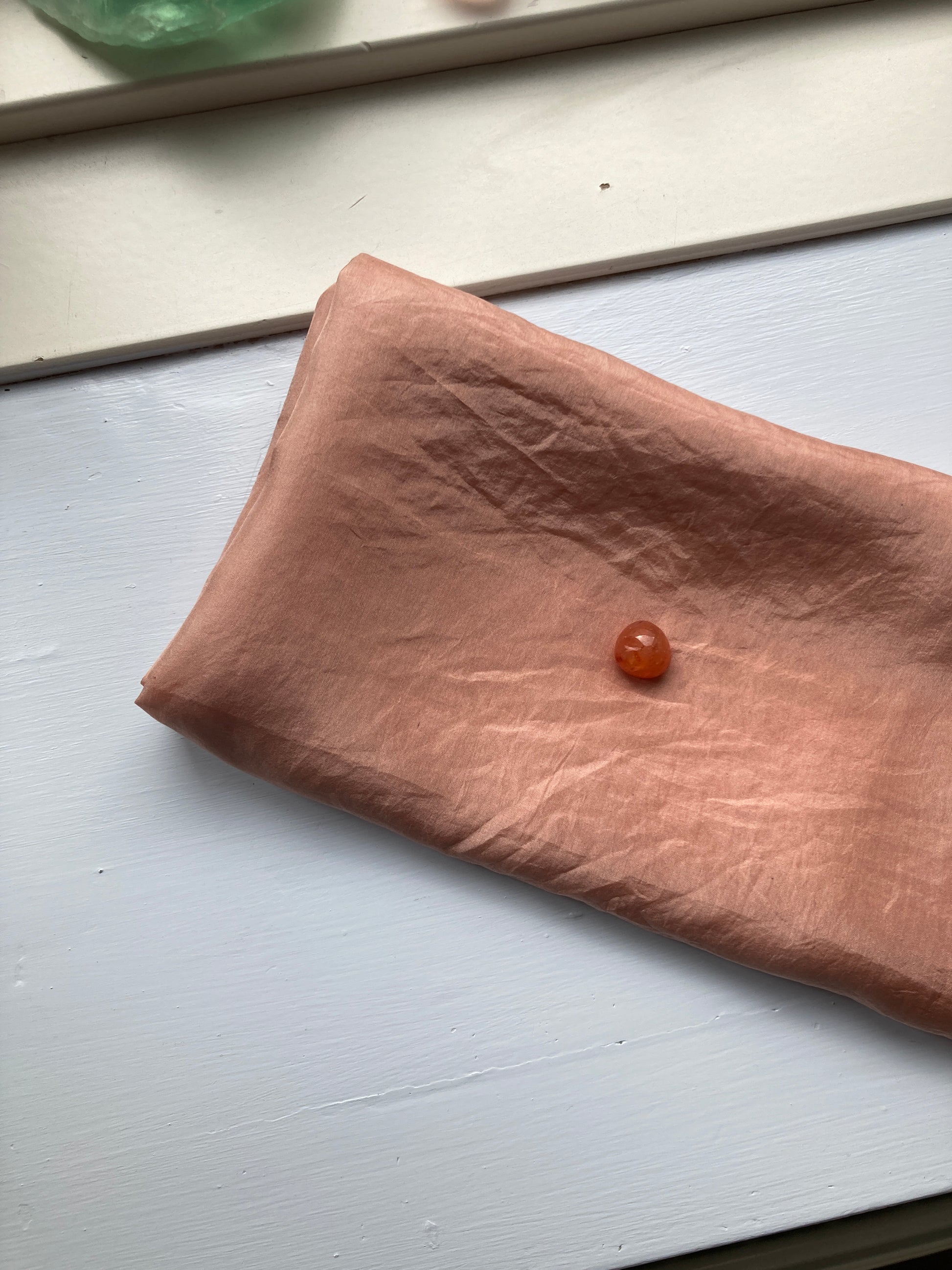 Hvert tørklæde er unikt. Når man plantefarver vil indfarvningen som regel være levende og organisk, hvilket kan medføre små smukke ujævnheder. Dette ser jeg ikke som fejl, men som små skønhedpletter, som giver tørklæderne karakter og personlighed.