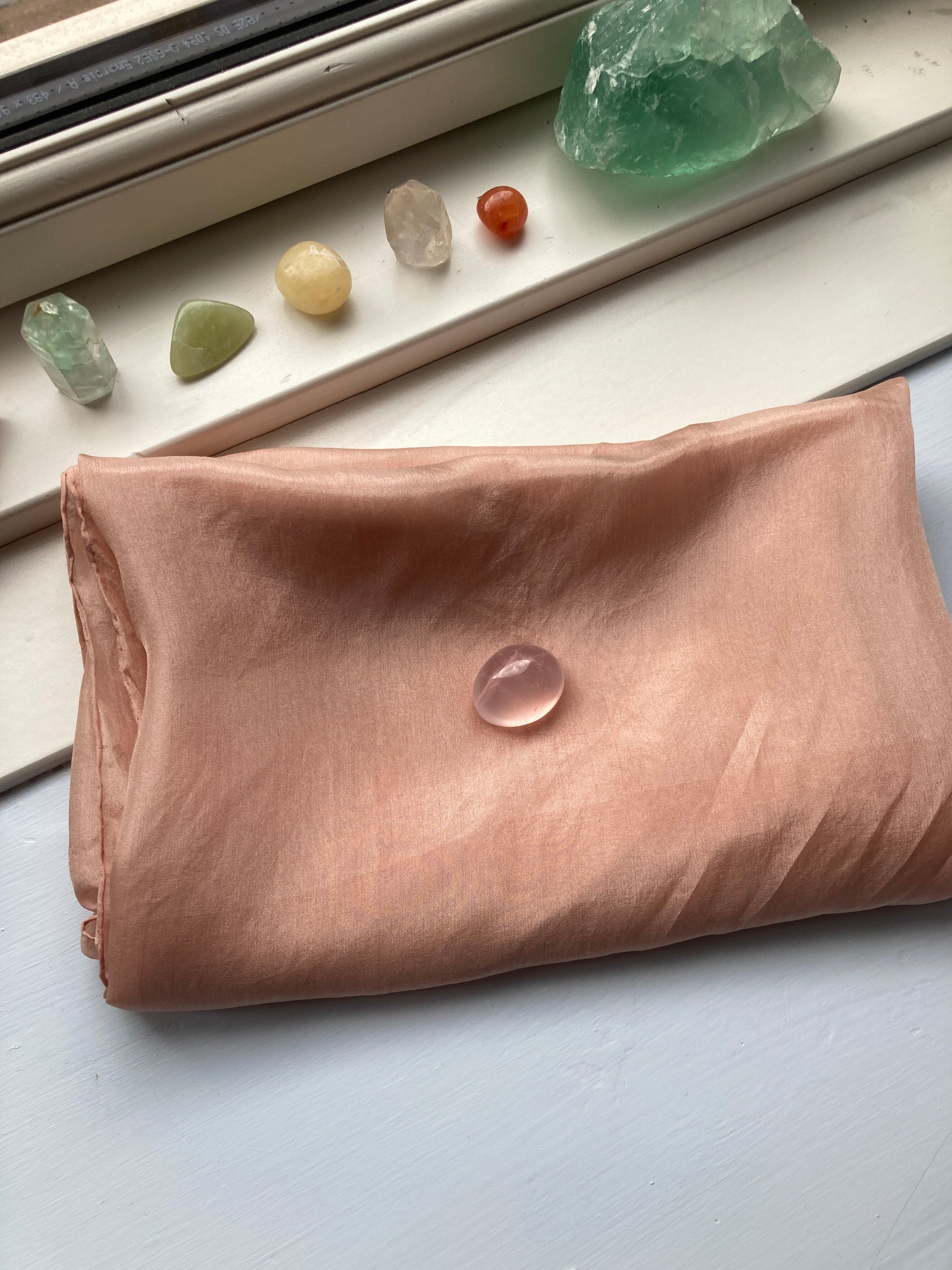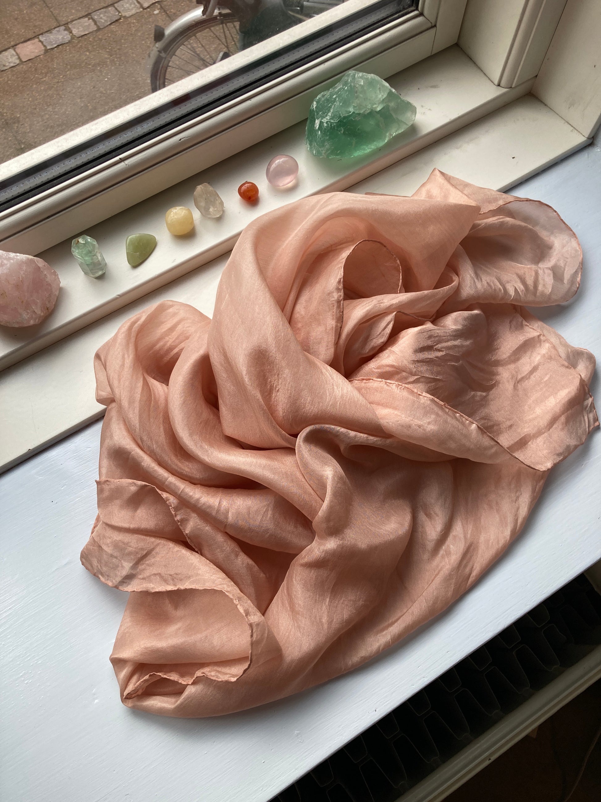 Hvert tørklæde er unikt. Når man plantefarver vil indfarvningen som regel være levende og organisk, hvilket kan medføre små smukke ujævnheder. Dette ser jeg ikke som fejl, men som små skønhedpletter, som giver tørklæderne karakter og personlighed.
