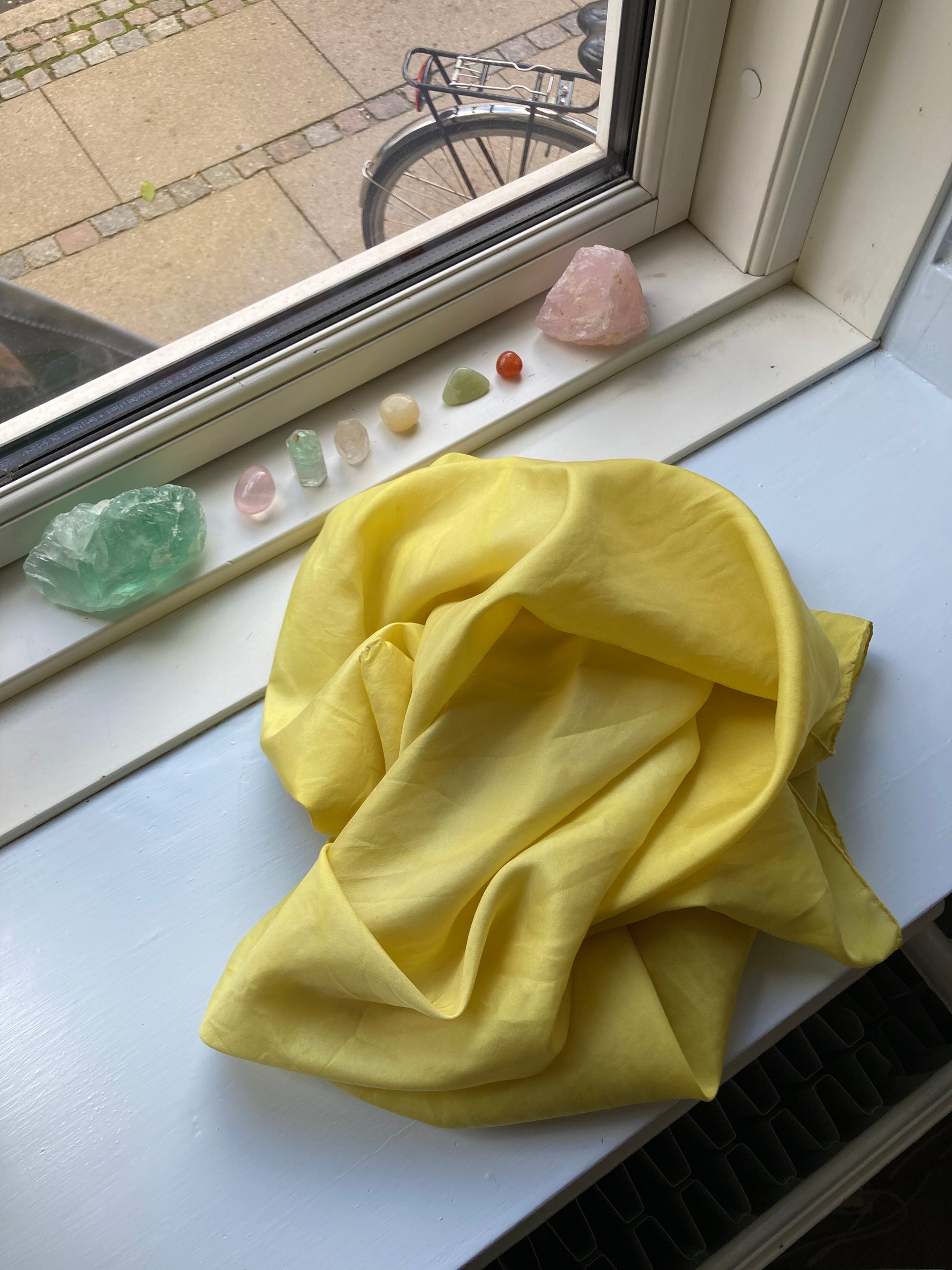 Silketørklæde farvet med vild kørvel. Dette tørklæde er i en lækker mat silkekvalitet og lidt mere kraftigt end de andre.