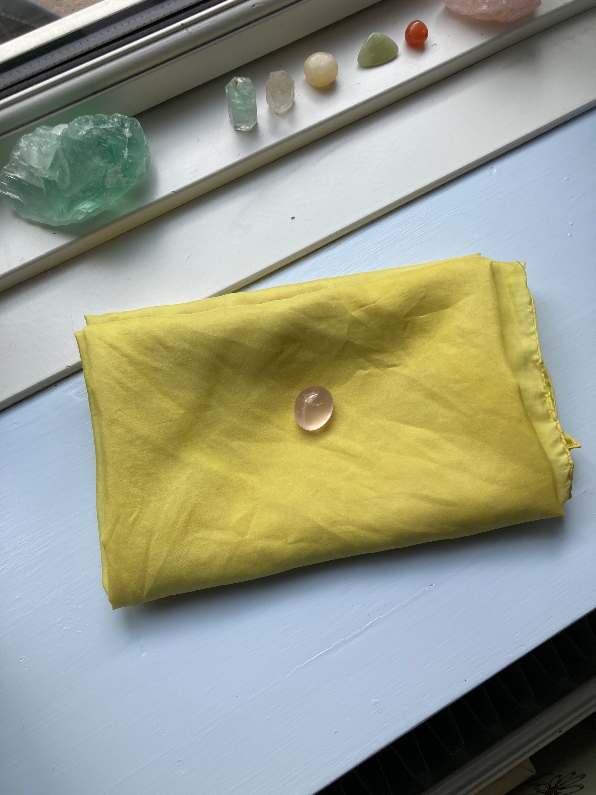 Hvert tørklæde er unikt. Når man plantefarver vil indfarvningen som regel være levende og organisk, hvilket kan medføre små smukke ujævnheder. Dette ser jeg ikke som fejl, men som små skønhedpletter, som giver tørklæderne karakter og personlighed.