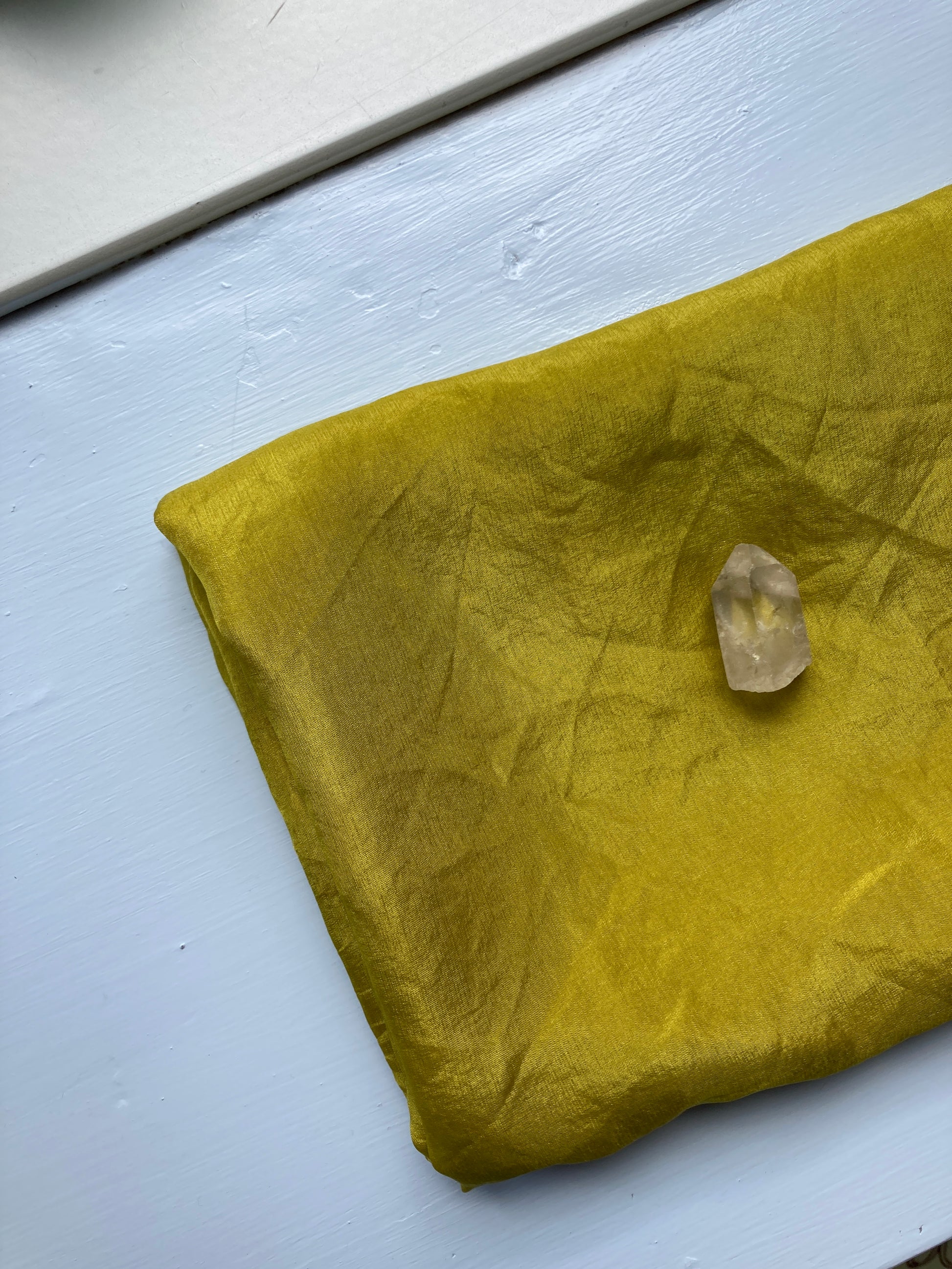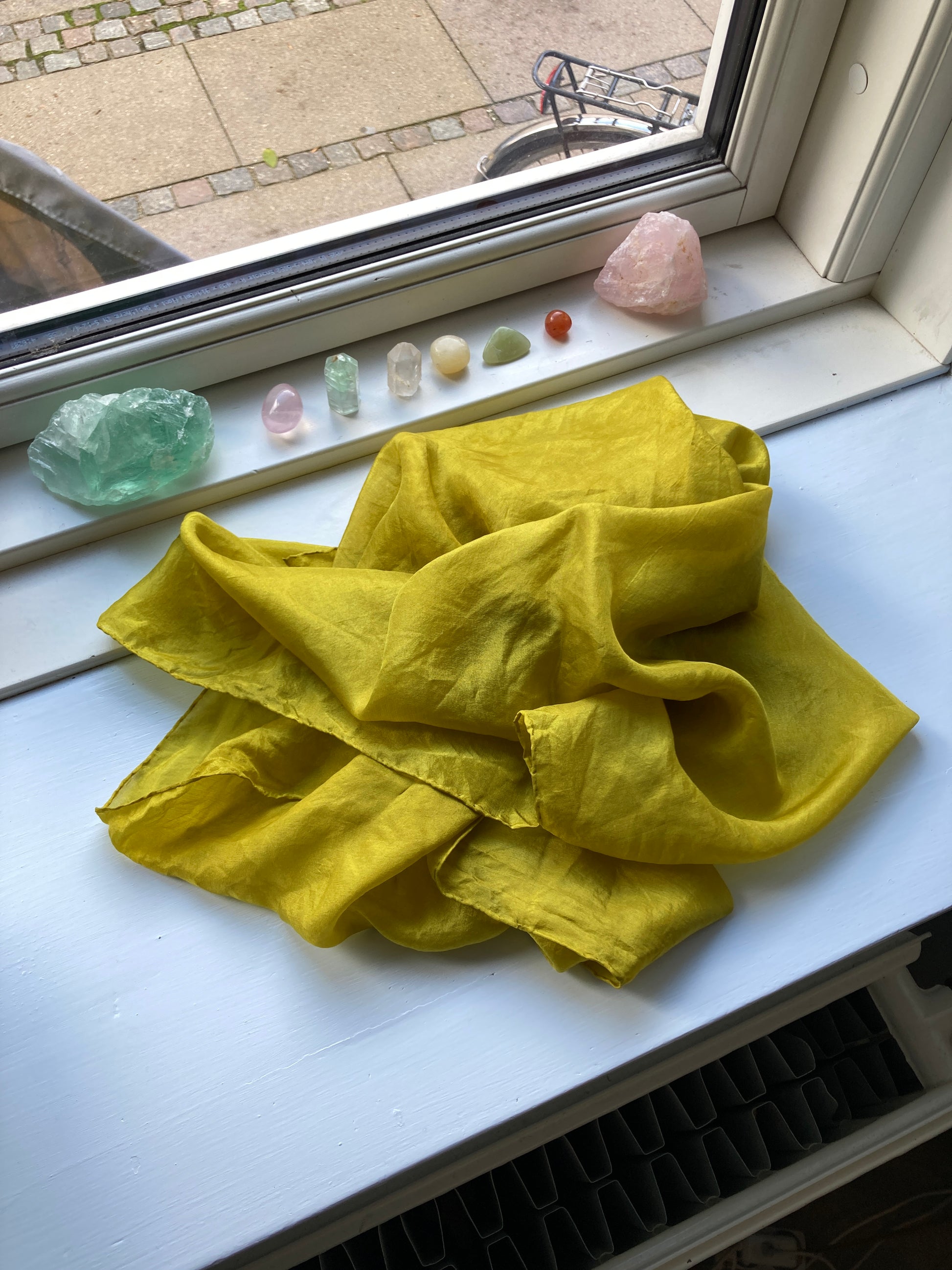 Silketørklæde i 100% silke, farvet med gyldenris fra Stevns.