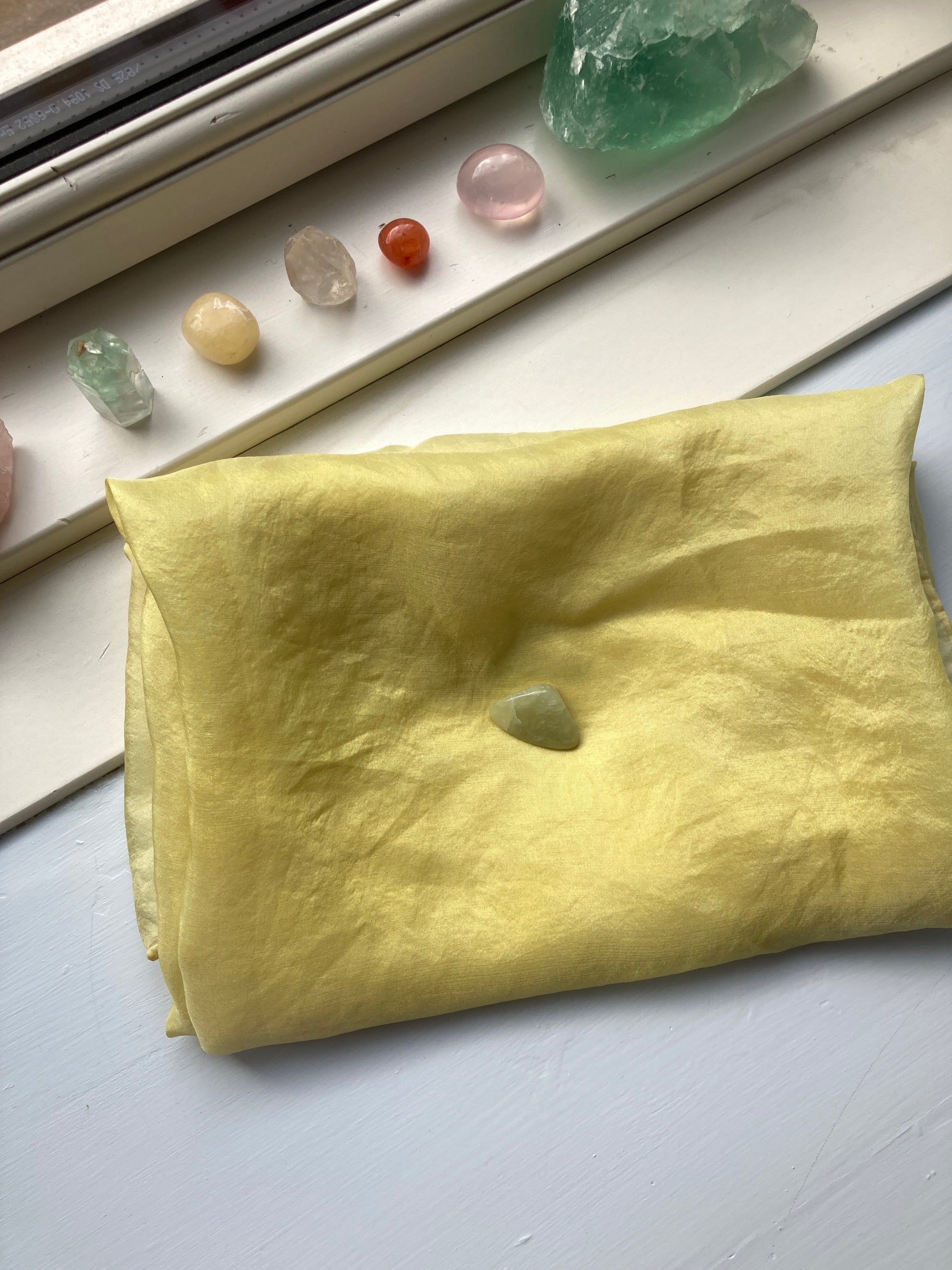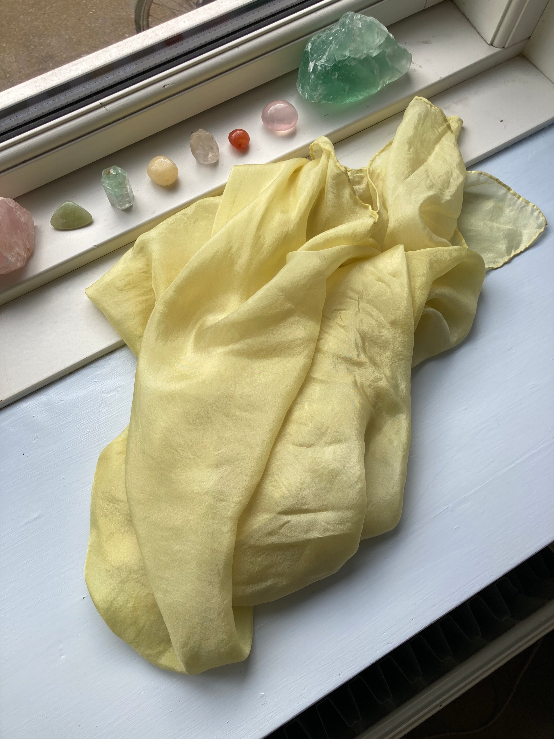 Hvert tørklæde er unikt. Når man plantefarver vil indfarvningen som regel være levende og organisk, hvilket kan medføre små smukke ujævnheder. Dette ser jeg ikke som fejl, men som små skønhedpletter, som giver tørklæderne karakter og personlighed.