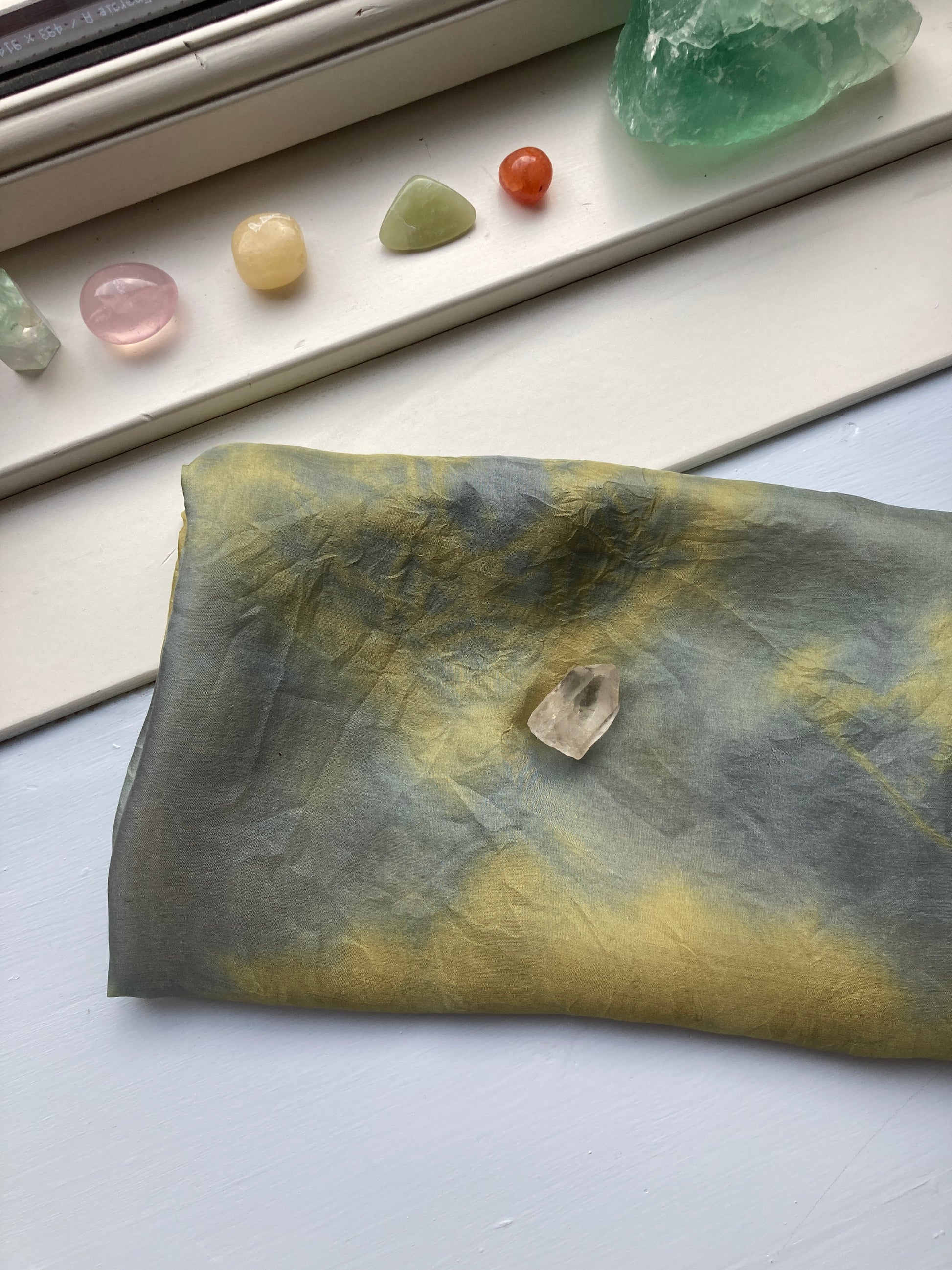 Hvert tørklæde er unikt. Når man plantefarver vil indfarvningen som regel være levende og organisk, hvilket kan medføre små smukke ujævnheder. Dette ser jeg ikke som fejl, men som små skønhedpletter, som giver tørklæderne karakter og personlighed.