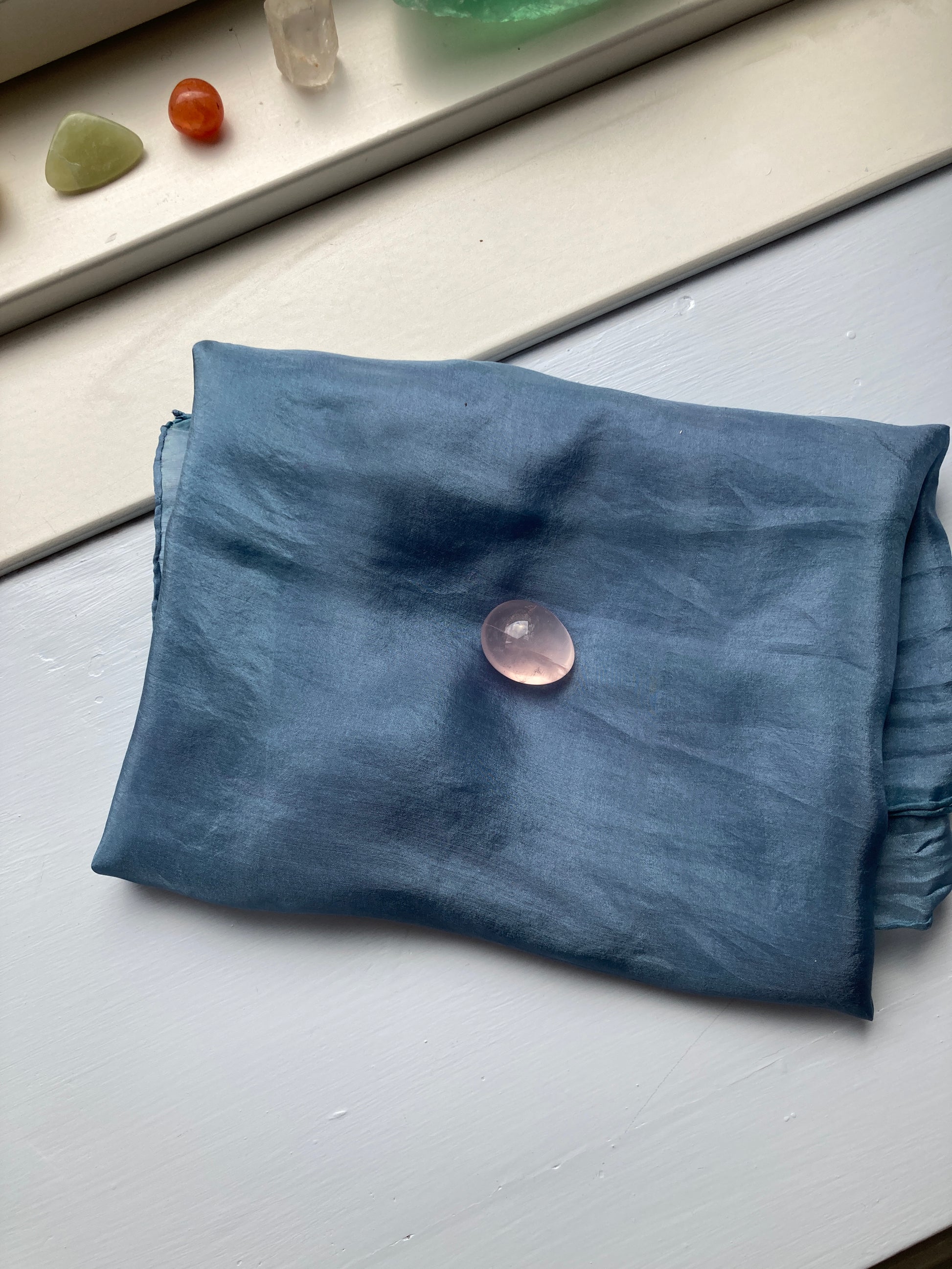 Hvert tørklæde er unikt. Når man plantefarver vil indfarvningen som regel være levende og organisk, hvilket kan medføre små smukke ujævnheder. Dette ser jeg ikke som fejl, men som små skønhedpletter, som giver tørklæderne karakter og personlighed.