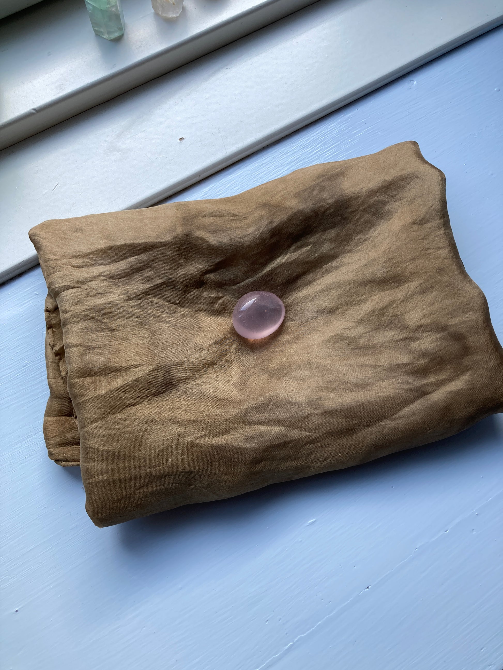 Hvert tørklæde er unikt. Når man plantefarver vil indfarvningen som regel være levende og organisk, hvilket kan medføre små smukke ujævnheder. Dette ser jeg ikke som fejl, men som små skønhedpletter, som giver tørklæderne karakter og personlighed.